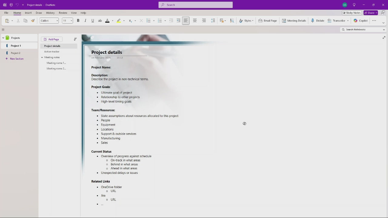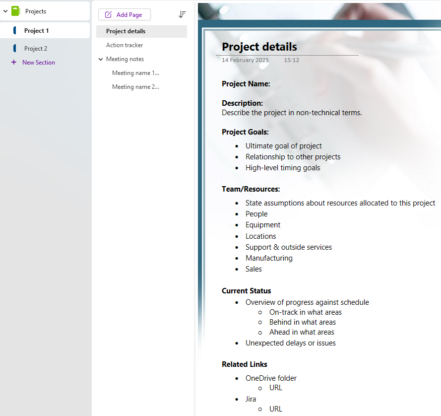 Stay on top of every meeting and project with this FREE OneNote template designed for clarity, consistency and productivity.